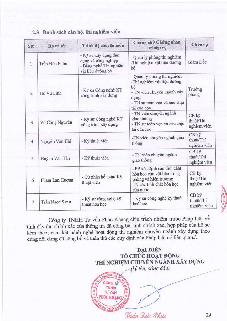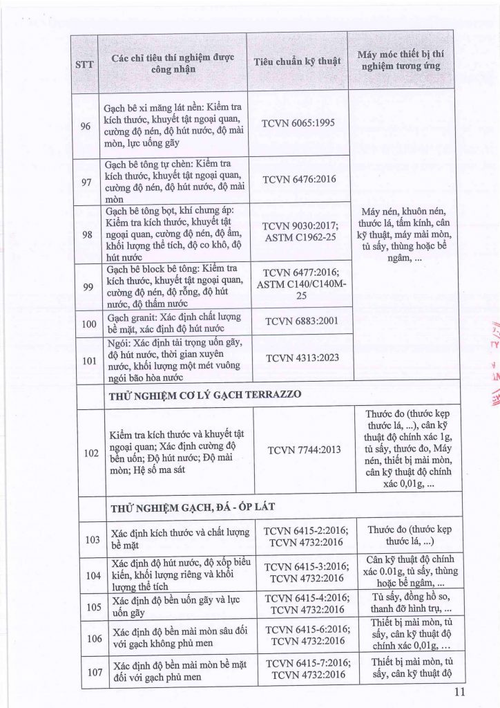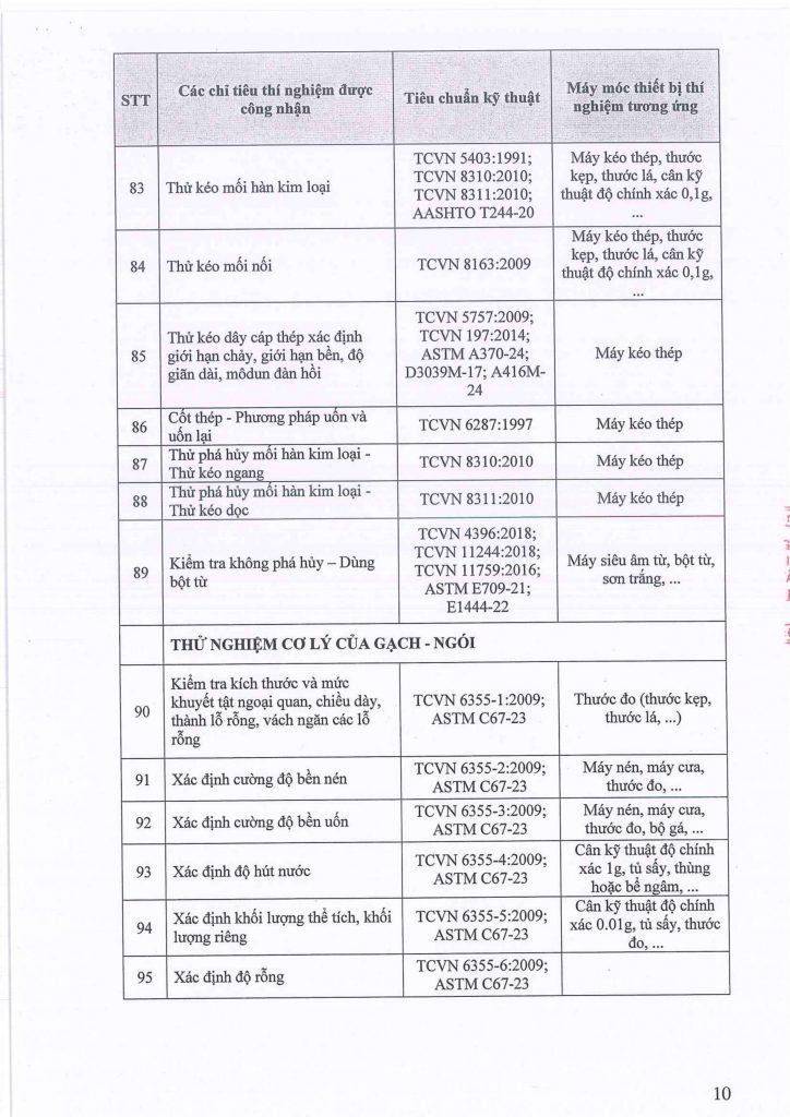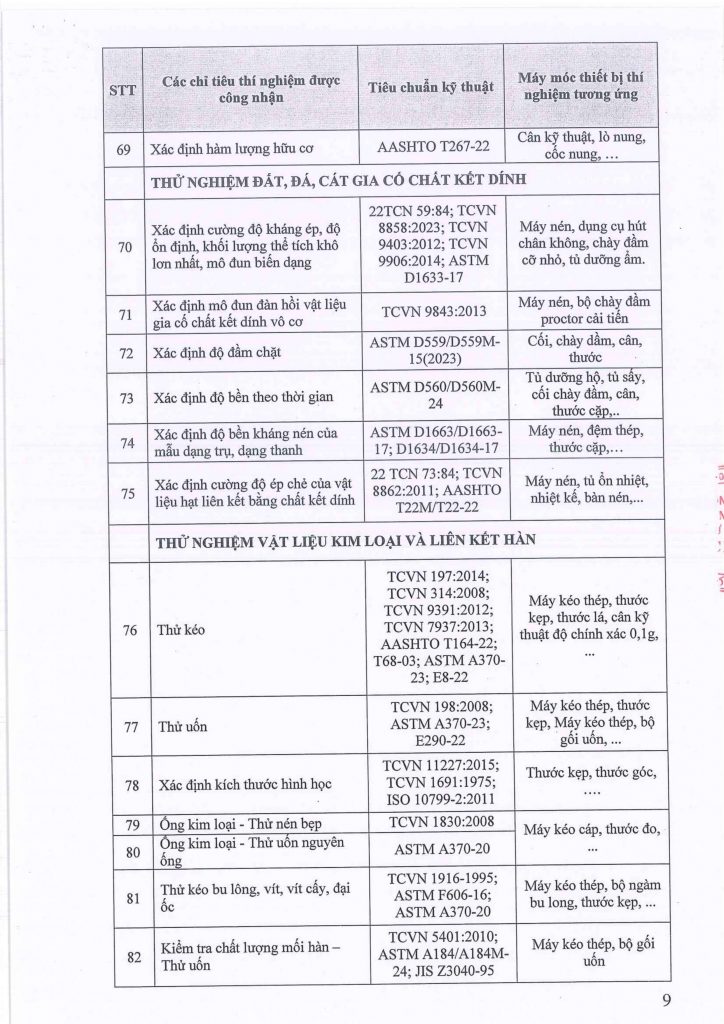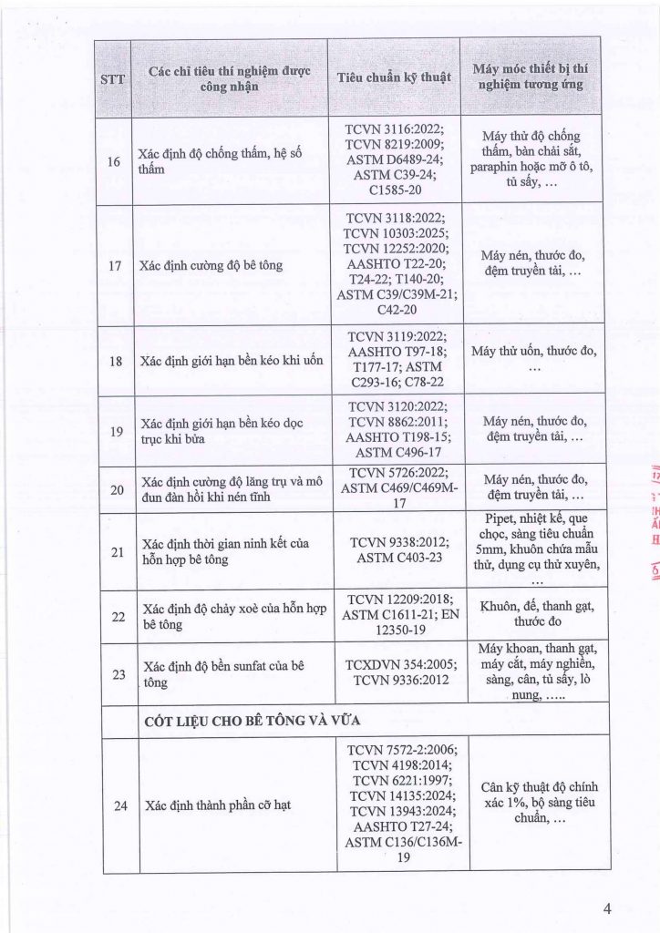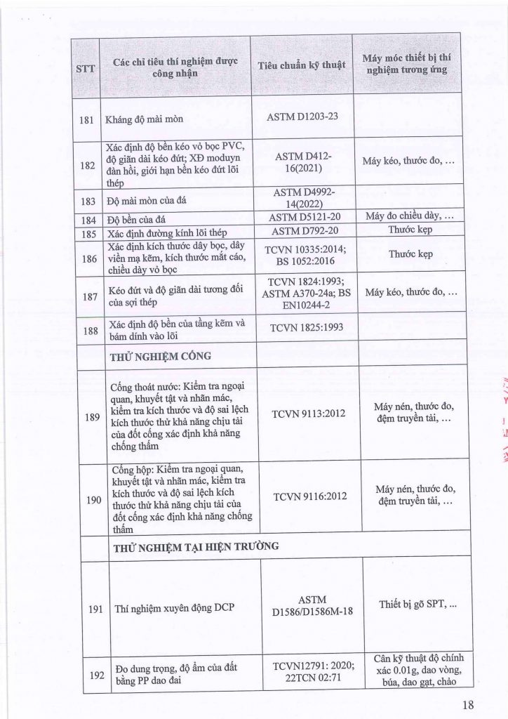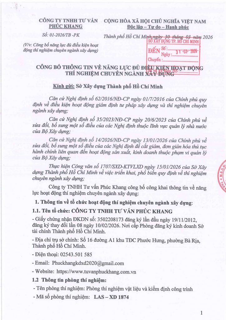 Phòng thí nghiệm đủ điều kiện thực hiện các hoạt động thí nghiệm vật liệu, kiểm định và đánh giá chất lượng vật liệu, cấu kiện theo danh sách công bố và theo các quy định hiện hành.
