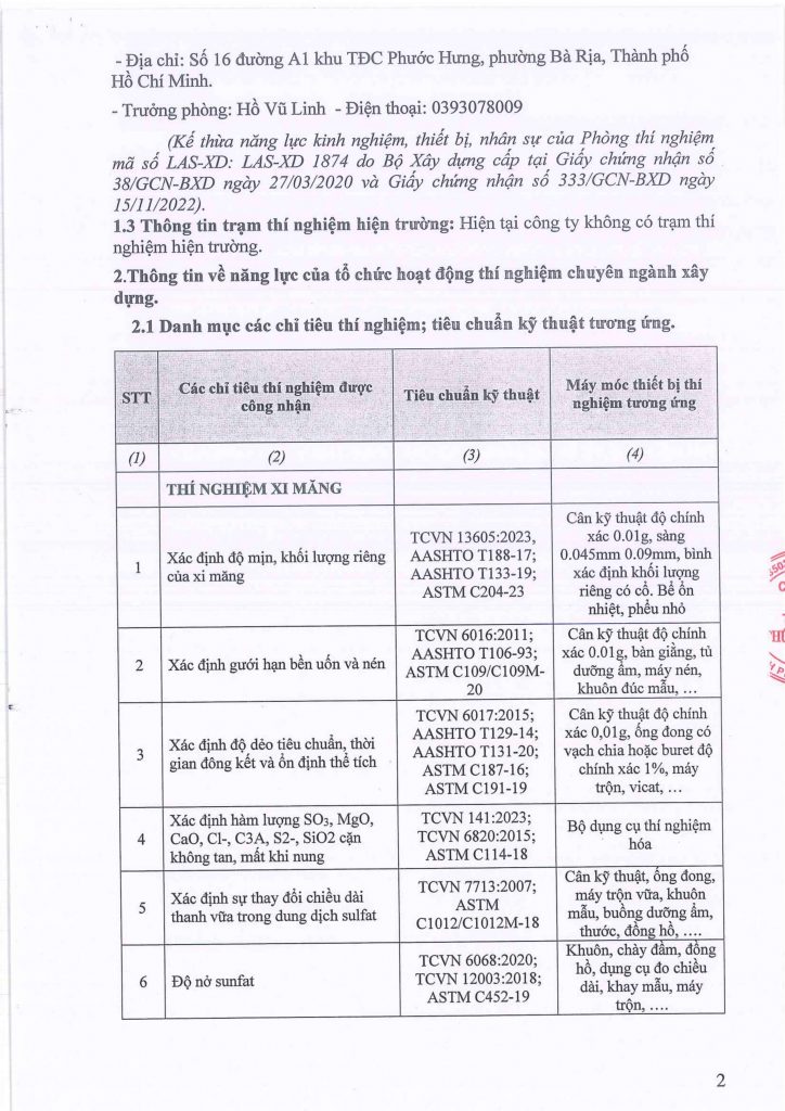 PHÒNG THÍ NGHIỆM LAS-XD 1874