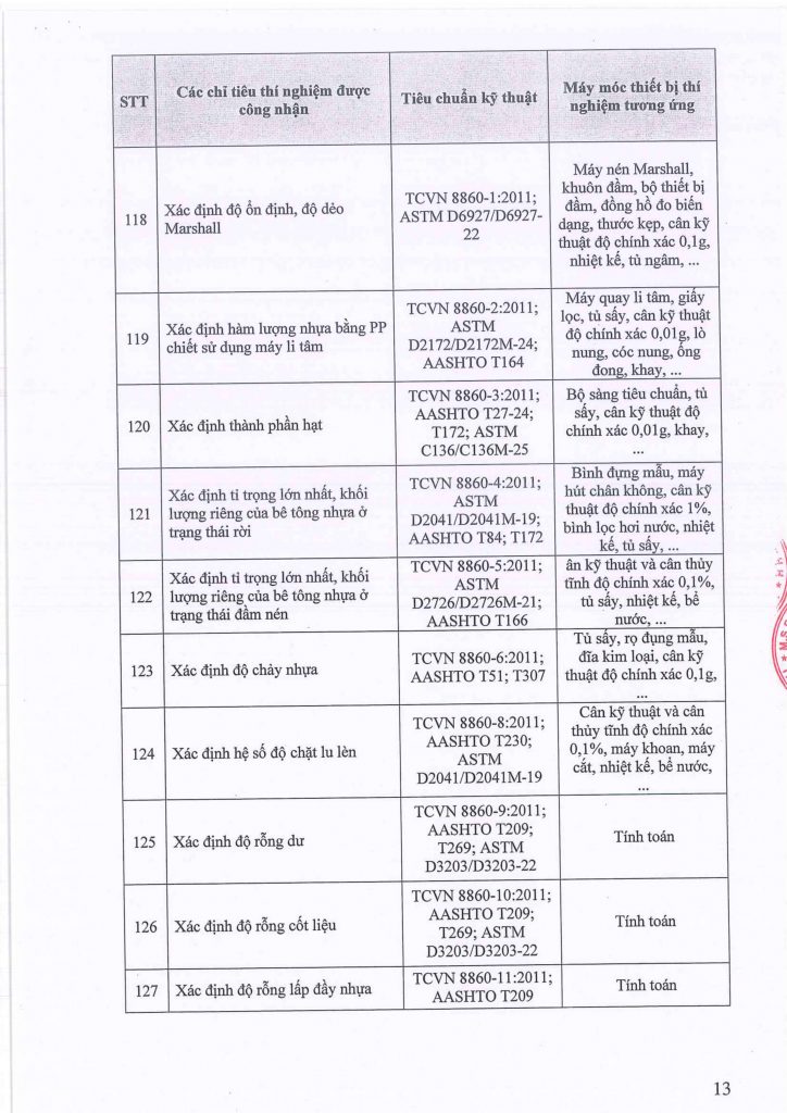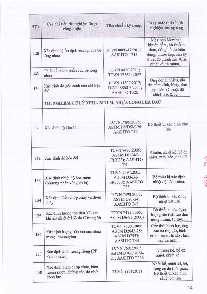 Theo các tiêu chuẩn: TCVN – ASTM – AASHTO